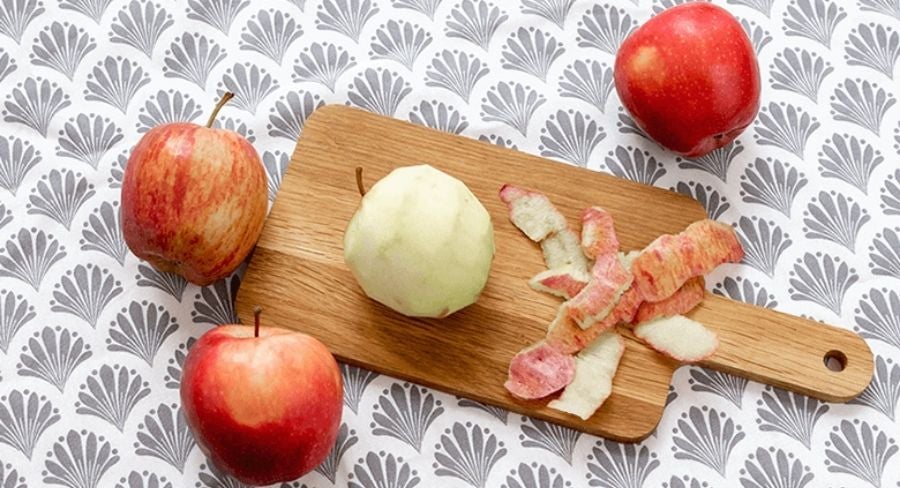 Lava las manzanas y pela.  Corta en rebanadas..