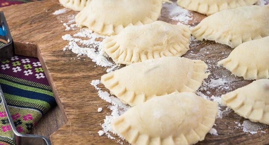Una vez pasados los 30 minutos vamos a empezar a armar nuestras empanadas, estira la masa sobre una superficie enharinada. Ahora con un plato y un corta pastas, vamos a cortar pequeños círculos del tamaño que prefieras, te recomendamos un tamaño mediano o pequeño. Coloca una cucharada de cajeta en el medio del círculo de masa y ciérralo formando una media luna. Puedes unir los bordes con un tenedor.