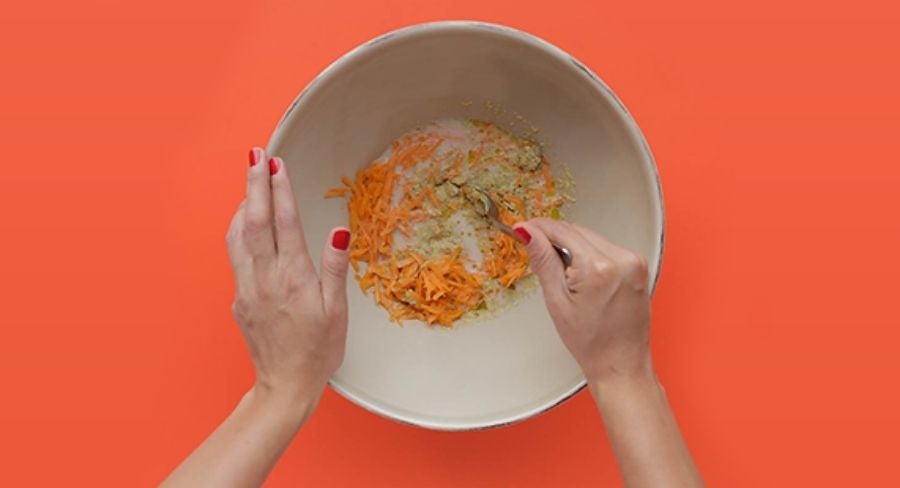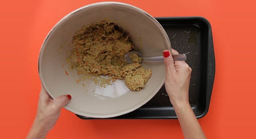 Vacía la mezcla en una charola para hornear previamente engrasada o si lo prefieres cubierta con papel encerado.