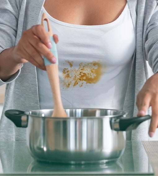 A temperatura alta facilita a remoção de manchas, e você pode potencializar essa ação com um pouco de vinagre de álcool branco e bicarbonato de sódio.